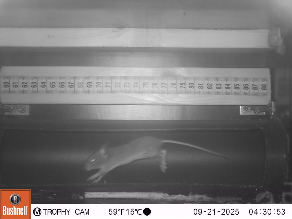 De Mostela cameravalkist ‘vangt’ dus niet fysiek de dieren, maar legt ze onder geoptimaliseerde omstandigheden vast op foto of video. De bedoeling is om hiermee eventuele “marterachtigen” vast te leggen. Dat is tot nu toe nog niet gelukt. Wel hebben we honderden foto’s van muizen die de kist wel interressant vonden